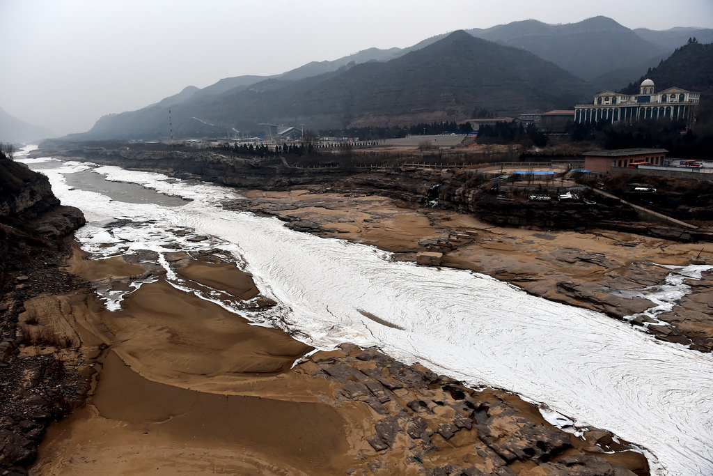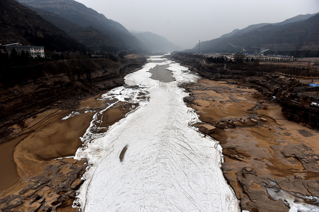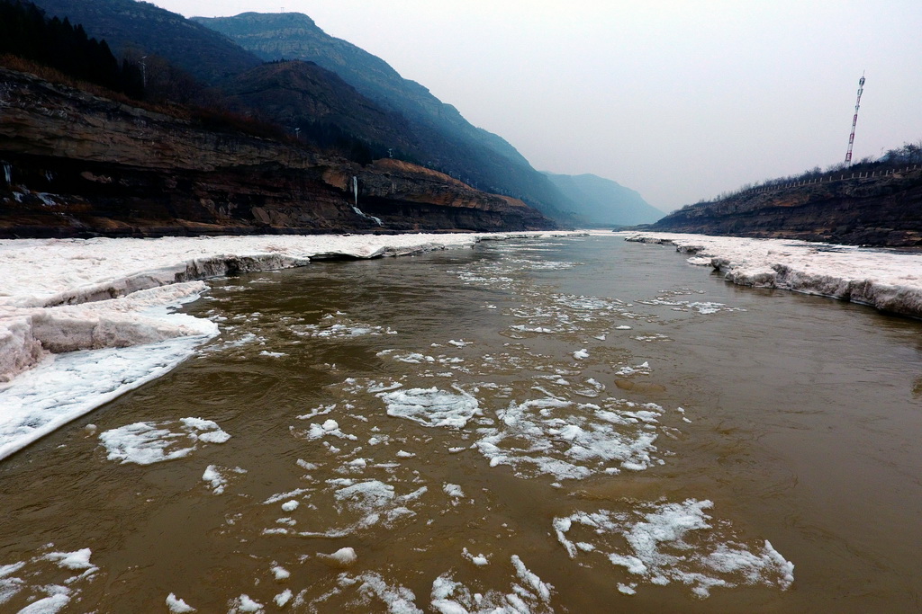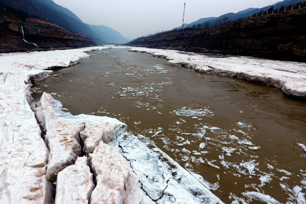 近日,受冷空气影响,位于山西省临汾市吉县境内的黄河出现大面积流凌。