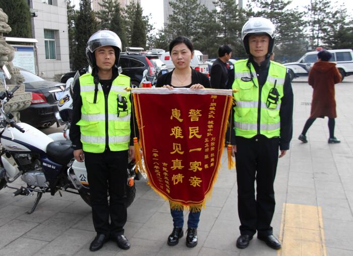 人民公益在线讯 (通讯员 王静波 李烨)3月26日,市民李女士来到朔城交警大队一中队将一面绣有“警民一家亲,患
