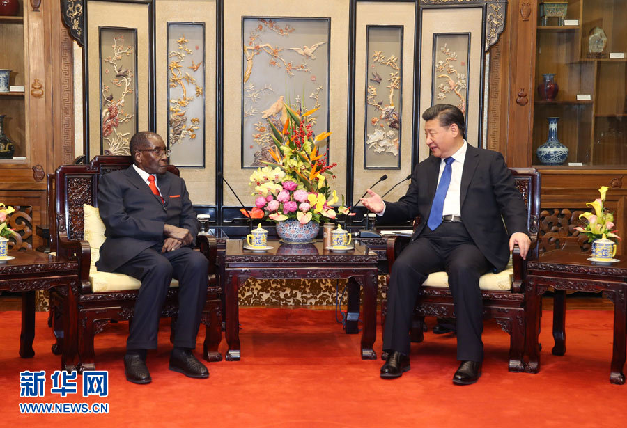 1月9日,国家主席习近平在北京钓鱼台国宾馆会见津巴布韦总统穆加贝。