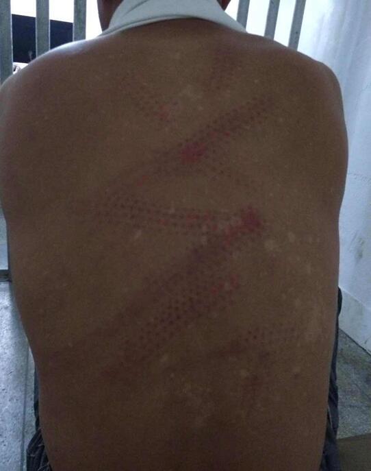 林金武的后背被警棍打得伤痕累累
