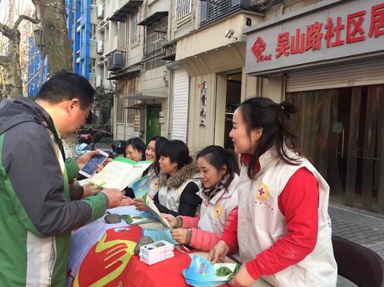 在活动现场,来自吴山路社区、社会爱心人士、益起来公益服务站15名红十字志愿者,身着志愿者标志服,冒着寒冷,开展科普宣传活动,向社区群众和过往游客发放人体器官捐献科普宣传单,认真解答过往群众的咨询。来自吴山路社区的年轻志愿者手拿宣传袋(内装遗体器官宣传手页、宣传册、捐献流程)在社区门口,向每一位市民及游客派发。一位游客接到宣传手袋,迫不及待的拿出宣传页浏览起来,并拉着年轻志愿者分享。社区志愿者在耐心解答一位老大爷的咨询,讲解着捐献流程。老大爷感动的说:“有意愿捐献,不知哪个部门管,现在知道了。”